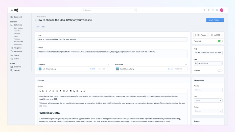 Each platform has its strengths, and our discovery process is key to identifying the right fit for your specific needs. By understanding your unique business objectives and technical requirements, we can guide you towards the CMS that will best serve your goals. This could be WordPress for its user-friendly interface and vast ecosystem, Statamic for its development speed and bespoke flexibility, or a headless solution like Sanity.io for ultimate performance and multi-platform content delivery.
